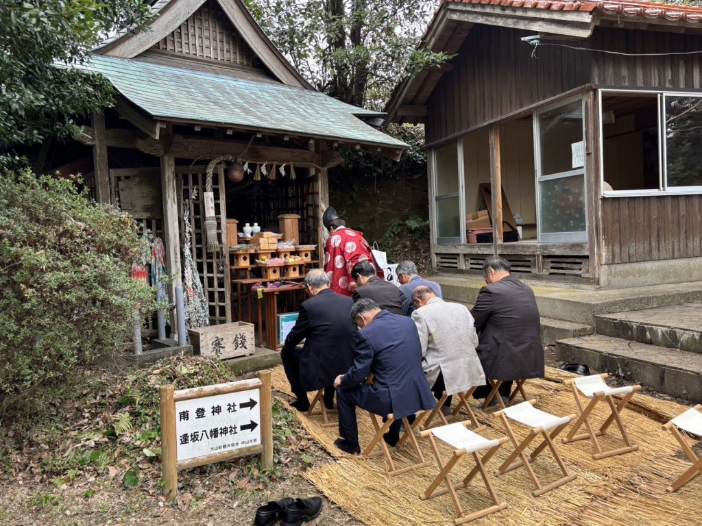午前中、総代さんに清掃、草刈り、注連縄飾り、幟立て等をご奉仕いただきました。